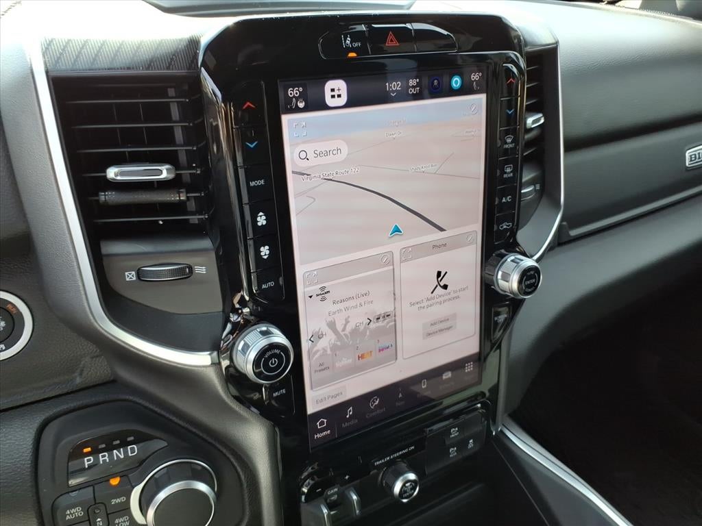 The 2025 RAM 1500 Big Horn is a vehicle that is sure to turn heads. With its low mileage of 3,515 miles, this 4x4 has a 3.0 liter 6 cylinder engine with twin turbo, and a billet silver metallic clear coat psc exterior. It has a fuel economy of 17 mpg in the city and 24 mpg on the highway, as well as a black x9 interior. This vehicle also has a crash test rating of 4 out of 5 stars, and features such as touch screen display, Bluetooth® audio connection, blind spot sensor, hill start assist, part time with on demand four wheel drive, navigation system with voice recognition, and Bluetooth® phone connectivity. The 2025 RAM 1500 Big Horn is the perfect combination of style and performance. See more pictures of this vehicle on our website! Call us today to schedule a test drive or just stop in to see us at our locations in Roanoke, VA, Bedford, VA, Covington, VA or Lexington, VA! We have proudly served all of Southwest Virginia for over 80 years, and look forward to serving you!